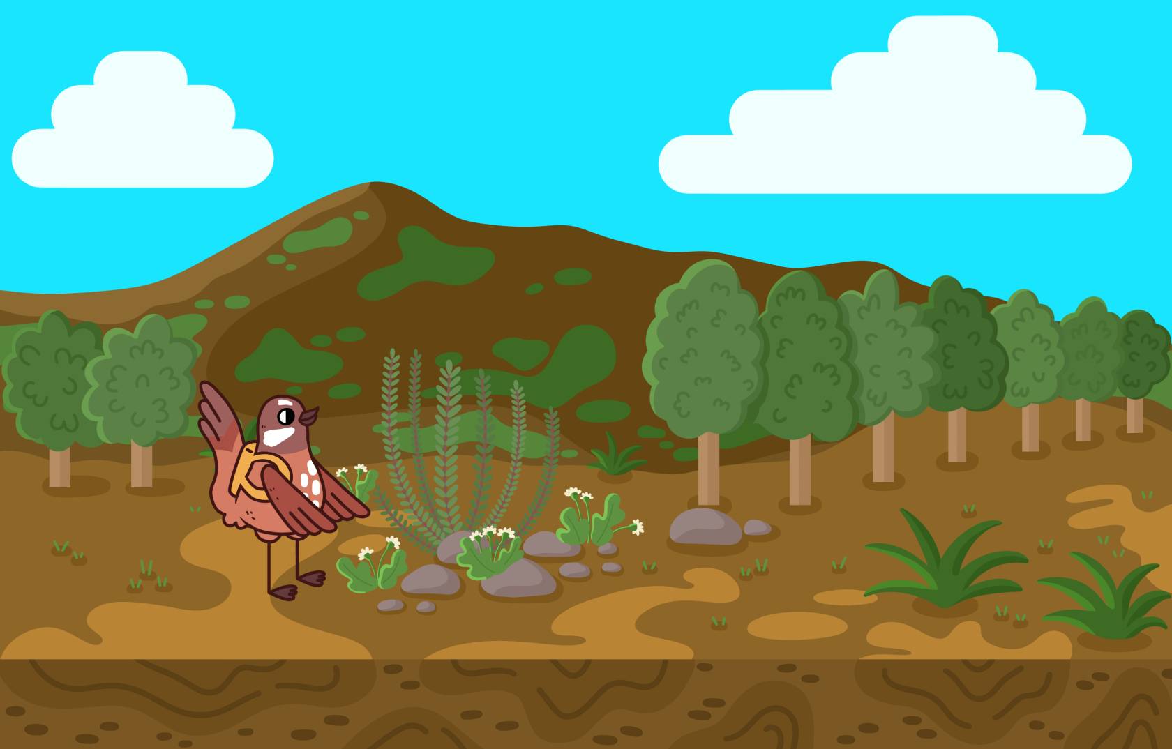 Ilustración de personajes para capsulas animadas de “Turca Trotabosques” a través Monstruosa Estudio de animación, que se enmarcan dentro del proyecto FNDR 6% del Gobierno Regional adjudicado por la RED de Santuarios de la Región Metropolitana el año 2021, bajo el título “Micro cuentos de los bosques que rodean la ciudad”.